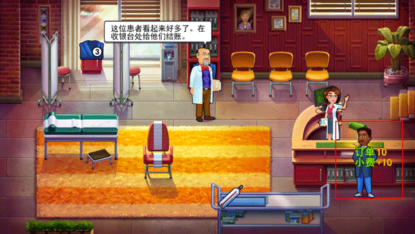 6. 治療完成后,前往前臺為患者結賬,獲取訂單收入與額外小費。