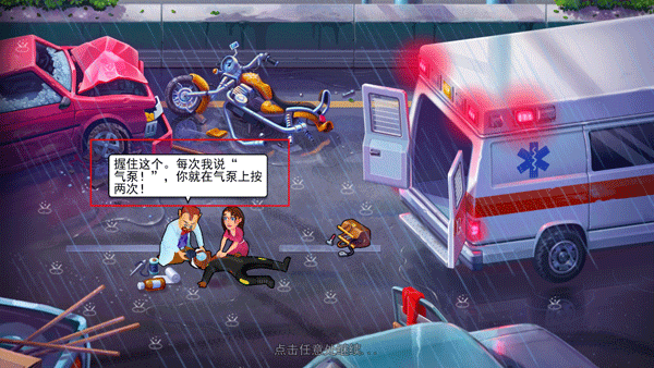 1. 游戲開場即遇緊急搶救:一名男子暈厥,需根據(jù)醫(yī)生指令點擊屏幕獲取所需物品。