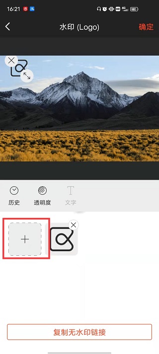4)在水印設(shè)置頁點擊“+”號,上傳自定義水印圖片