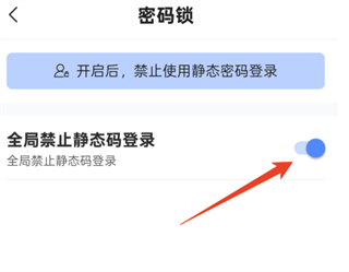 2、在設(shè)置界面中,關(guān)閉“全局禁止靜態(tài)密碼登錄”開關(guān)即可恢復(fù)使用靜態(tài)密碼登錄。